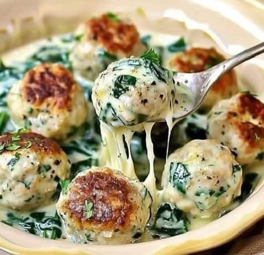 Chicken Ricotta Meatballs in Spinach Alfredo Sauce