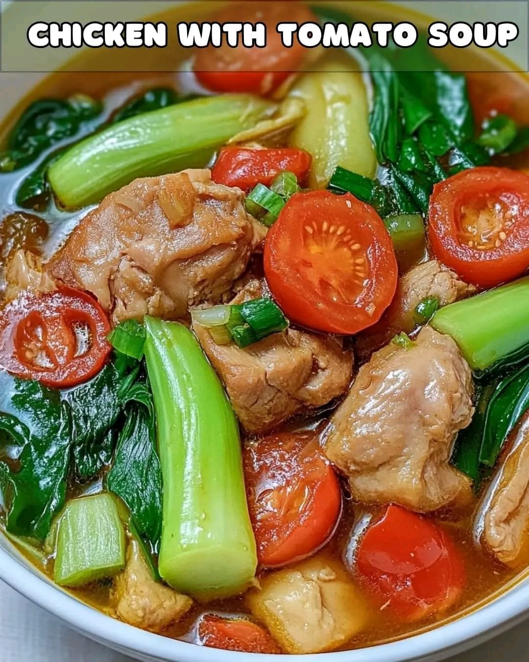 Savor a satisfying bowl of delectable Chicken with Tomato Soup that perfectly strikes a balance between soft chicken, crisp veggies, and savory spices. This filling recipe is created with tender chicken pieces cooked in a flavorful broth with bok choy, fresh tomatoes, and a touch of heat from green chili peppers. The tastes are enhanced with the addition of onion, garlic, and ginger, making this a pleasant and tasty soup that’s also simple to make. This soup is great for a light lunch or supper and will definitely warm you up and tantalize your taste senses.
