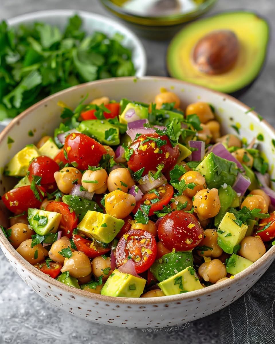 This Chickpea and Avocado Salad is a vibrant, protein-packed dish full of creamy avocado, tender chickpeas, and crisp vegetables, all tossed in a zesty lemon dressing. Perfect for a quick lunch, a light dinner, or a nutritious side dish, it combines creaminess, crunch, and a hint of tang in every bite. Vegan, gluten-free, and loaded with fiber, it’s a healthy and satisfying option for any time of day.