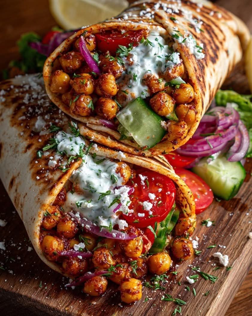 Chickpea & Feta Wrap with Veggies & Yogurt Sauce