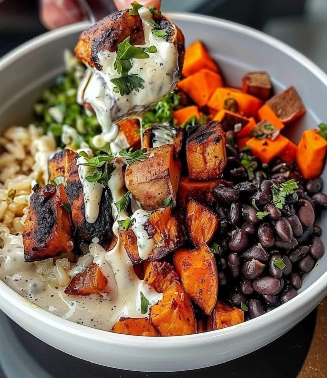 This Chipotle Chicken Bowl is a flavorful, protein-packed meal featuring smoky, spiced chicken, roasted sweet potatoes, and seasoned black beans. Served over rice or greens and topped with a creamy chipotle sauce, it’s a satisfying and nutritious dish that’s perfect for meal prep or a wholesome dinner.
