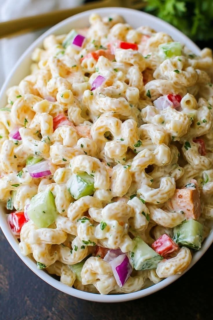Classic Creamy Macaroni Salad is a timeless, crowd-pleasing side dish known for its tender elbow macaroni, crunchy vegetables, and smooth, tangy-sweet dressing. It pairs perfectly with barbecue, picnics, potlucks, holiday meals, and weeknight dinners. The flavors come together beautifully after chilling—making it even better when prepared ahead of time.