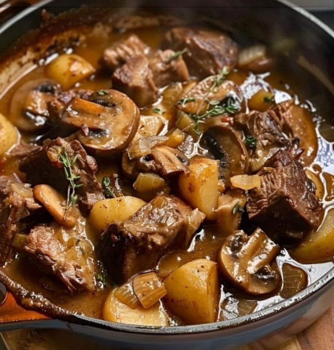 Rich, delicious tastes are brought to your table with every soft mouthful of this classic French beef stew with mushrooms. This stew is ideal for special feasts or cold evenings since it adds rustic charm and warmth to your house. Savor a little bit of France with every bite!