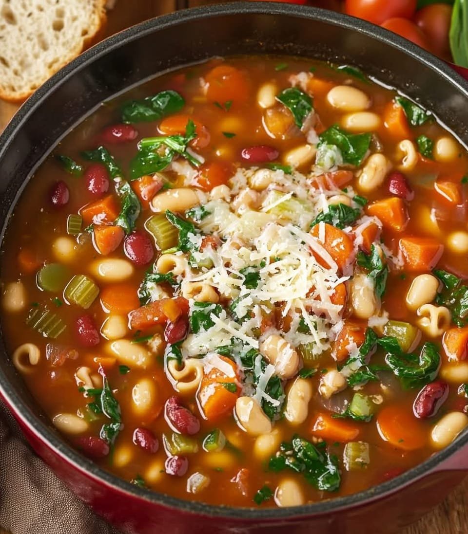 Minestrone soup is a classic Italian dish known for its hearty mix of vegetables, beans, pasta, and a rich tomato-based broth. It’s a versatile soup that can be adapted with seasonal ingredients and dietary preferences.