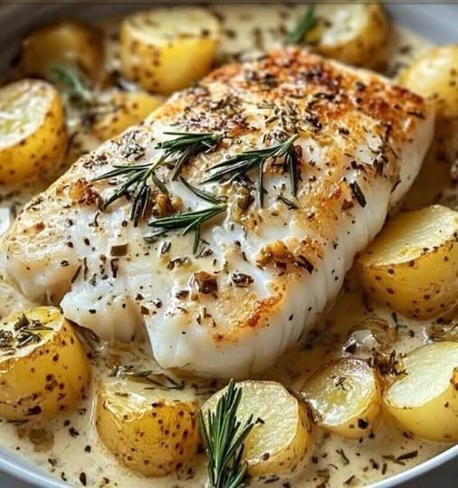 Cod and Potatoes in Rosemary Cream Sauce is a cozy, flavorful dish that feels restaurant-quality but is easy to make at home. The rosemary adds a beautiful aroma that pairs perfectly with the creamy sauce and delicate fish.