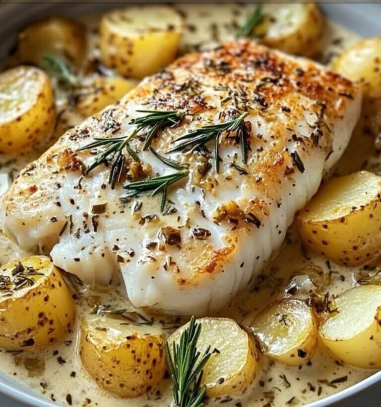 This Cod and Potatoes in Rosemary Cream Sauce is a perfect combination of simplicity and elegance. The crispy seared cod tender roasted potatoes and rich herb-infused cream sauce come together to create a comforting yet restaurant-quality meal. Whether you’re cooking for a special occasion or just want to elevate your weeknight dinner this dish is sure to impress Pair it with a fresh salad or some crusty bread to soak up the delicious sauce.
