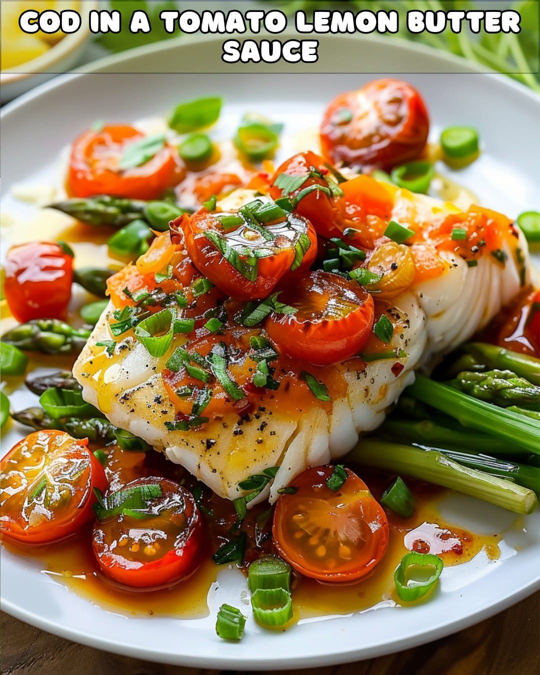 Serve the cod fillets right away with your preferred side dishes and the tomato-lemon butter sauce.