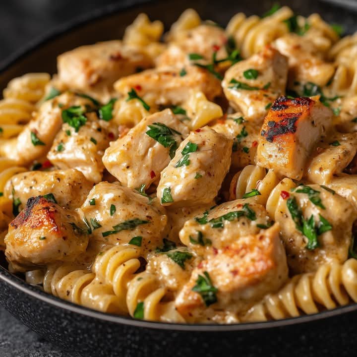 Cowboy Chicken Pasta is a hearty and flavorful dish inspired by the bold, smoky flavors of the American Southwest. It combines tender grilled or sautéed chicken seasoned with smoky spices, a creamy tomato sauce, bell peppers, corn, black beans, and pasta — usually penne or rotini. The result is a satisfying one-pot meal perfect for weeknight dinners or casual gatherings, bringing together protein, veggies, and carbs in a deliciously comforting way.