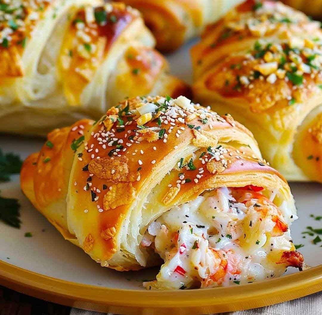 Crab and cheese filled crescent rolls are a delicious and easy-to-make appetizer or snack. Flaky crescent roll dough is stuffed with a creamy, cheesy crab filling, then baked until golden brown. This dish is perfect for parties, game nights, or as a seafood-inspired treat. The combination of crab meat, cream cheese, and seasonings creates a rich and flavorful bite.
