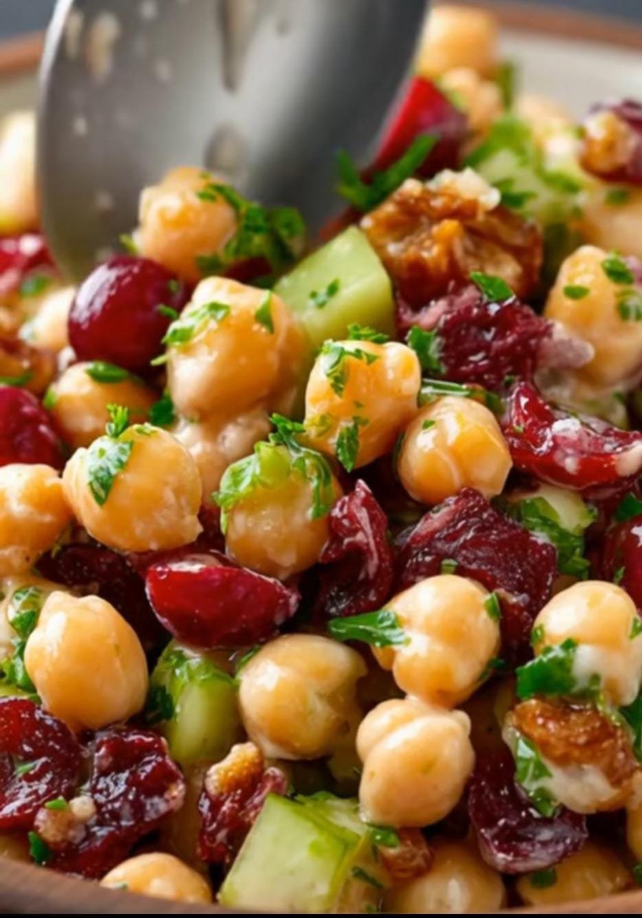 Cranberry Walnut Chickpea Salad is a fresh, protein-packed dish that balances sweet, tangy, and nutty flavors in every bite. Creamy chickpeas form the base, while chewy dried cranberries and crunchy walnuts add texture and contrast. A light, zesty dressing ties everything together, making it perfect for meal prep, picnics, or a quick healthy lunch. It works well as a standalone salad, a sandwich filling, or a side dish for grilled meals. The ingredients are simple, the prep is fast, and the flavors get even better after a short chill in the fridge.