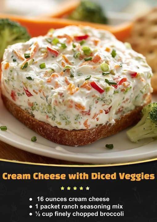 Cream Cheese with Diced Veggies is simple, flexible, and always a hit. The creamy base combined with crisp vegetables creates a satisfying texture and balanced flavor. It’s quick enough for everyday snacking yet appealing enough for gatherings.