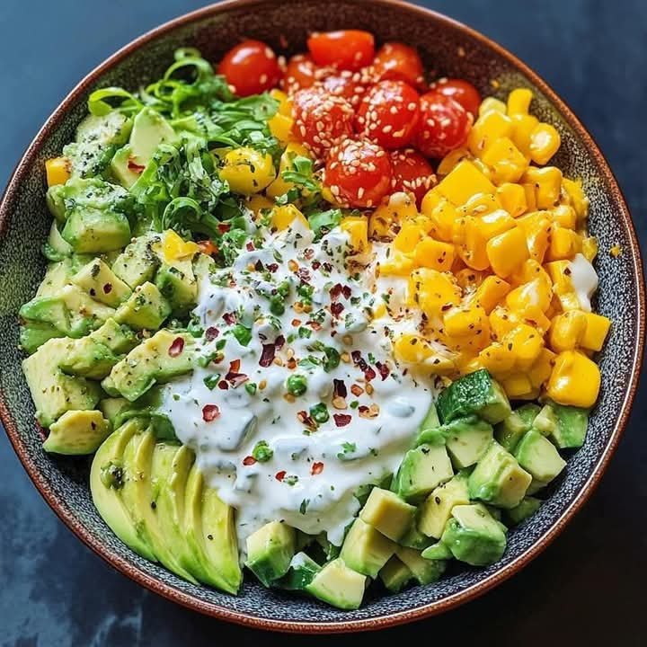 This Creamy Avocado Corn Salad is vibrant, fresh, and perfect for summer! Sweet corn, ripe avocados, crisp cucumbers, juicy tomatoes, and a creamy, zesty dressing come together for a refreshing side dish or a light lunch. It’s loaded with healthy fats, fiber, and plenty of flavor — all without feeling heavy.