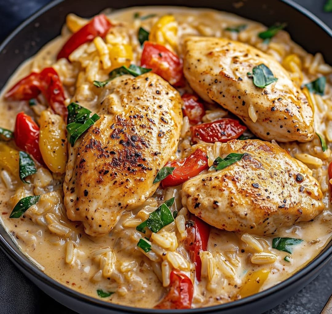 Creamy Cajun Chicken and Rice Skillet is a one-pan dish that’s rich, spicy, and packed with flavor. Juicy Cajun-seasoned chicken is cooked with aromatic vegetables, creamy sauce, and fluffy rice, making it a perfect weeknight meal. This dish combines the bold flavors of Cajun cuisine with the comforting texture of creamy rice—all in just 40 minutes!