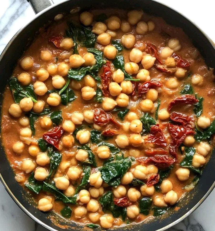 Creamy Chickpea and Spinach Stew with Sun-Dried Tomatoes