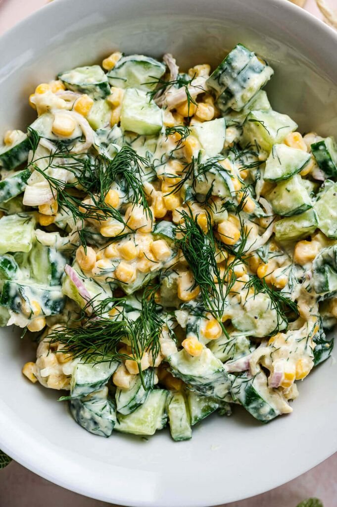Creamy Corn Cucumber Salad with Tzatziki Sauce (Fresh & Healthy)