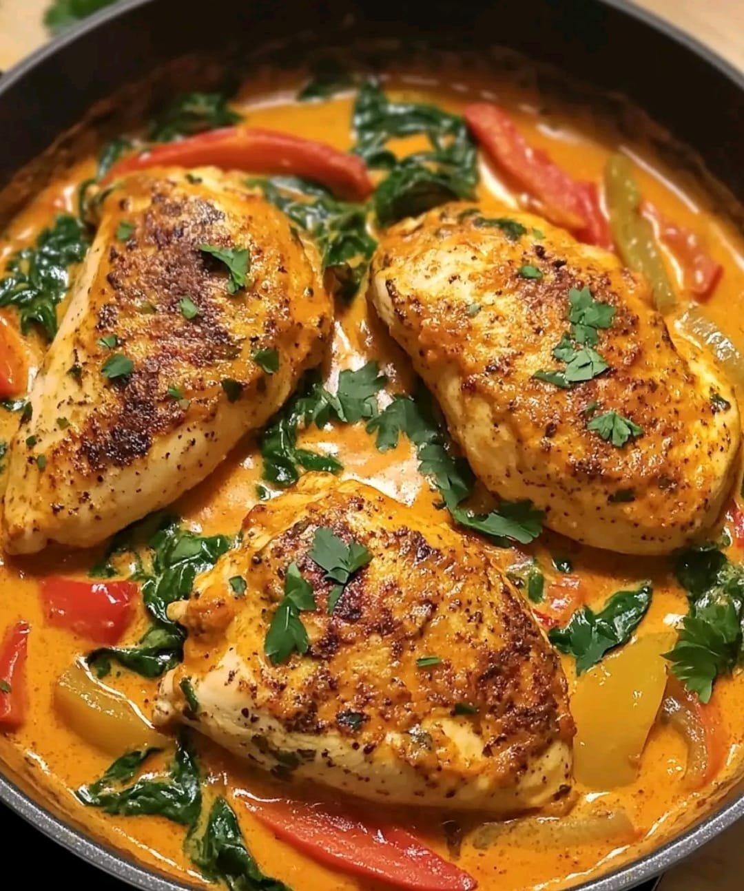 Creamy Garlic Chicken with Spinach and Peppers Recipe