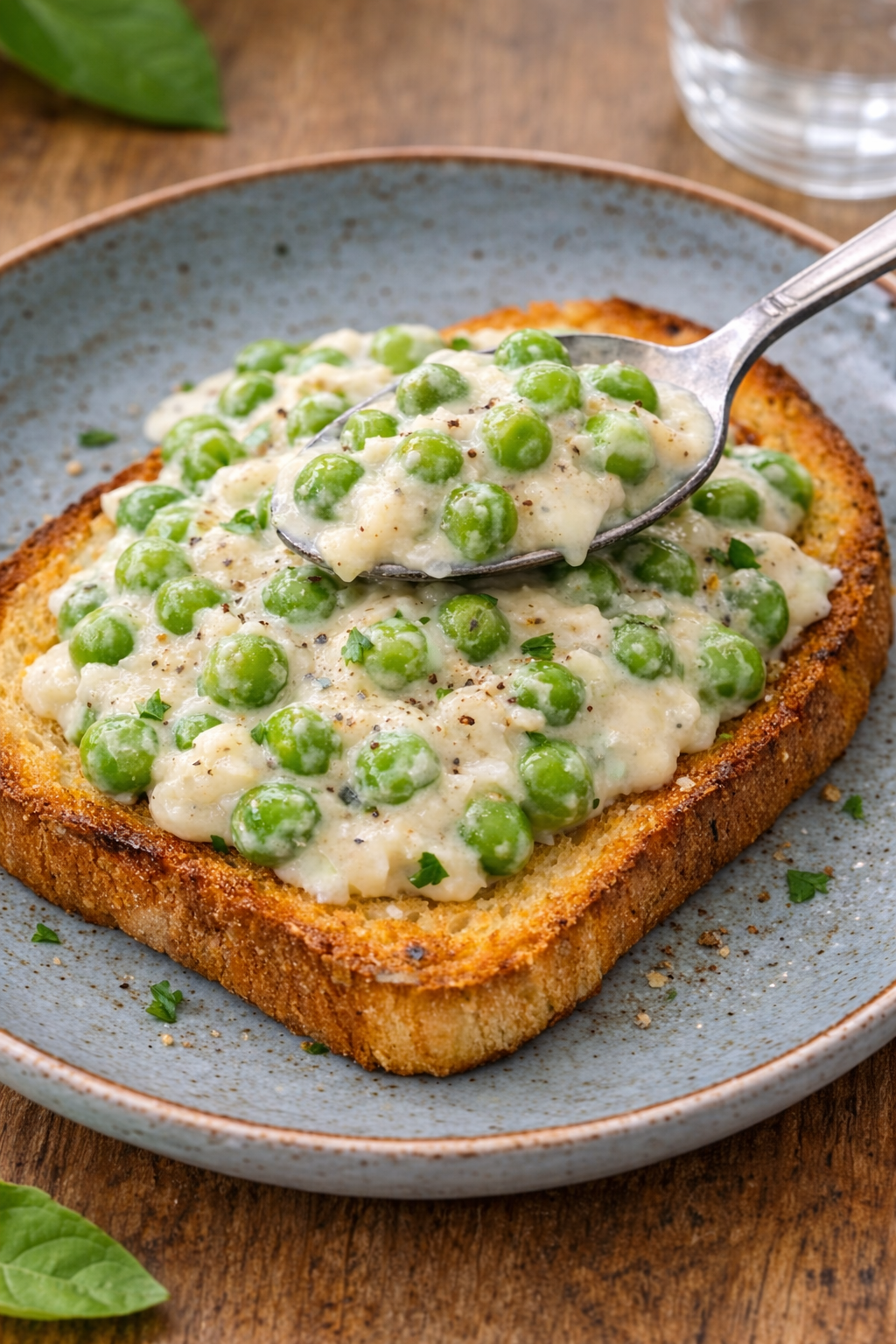 Often enjoyed as a quick breakfast, light lunch, or snack, this recipe is both satisfying and nutritious. The crisp toast provides a sturdy base, while the creamy peas create a soft, savory topping that melts in your mouth. It’s a budget-friendly, easy-to-make dish that feels gourmet with minimal effort.