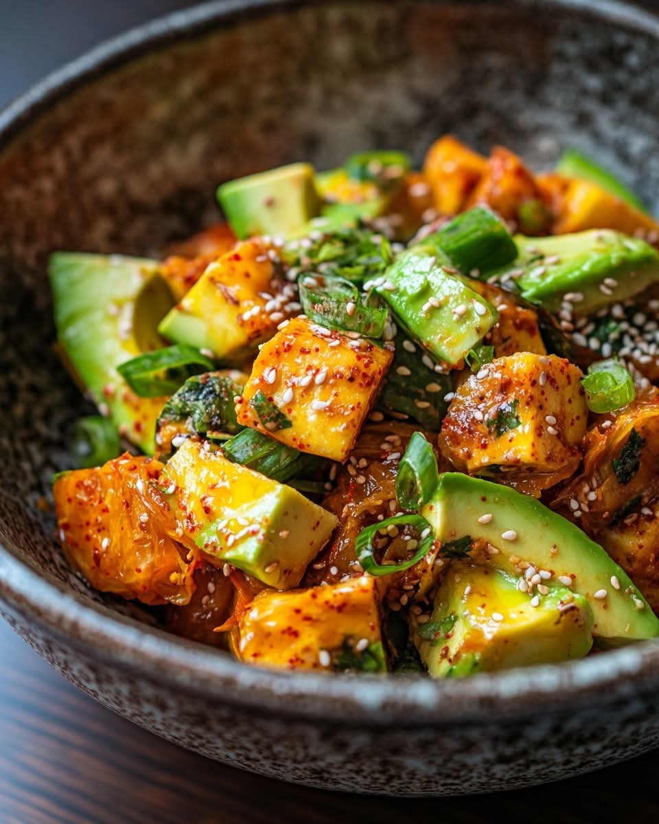 This Creamy Kimchi Avocado Salad is a bold and flavorful dish that combines the tangy, spicy kick of kimchi with the creamy richness of avocado. Tossed in a savory, umami-packed dressing, this salad is a perfect side dish or a light meal on its own. It’s packed with probiotics, healthy fats, and fiber, making it both delicious and nutritious.