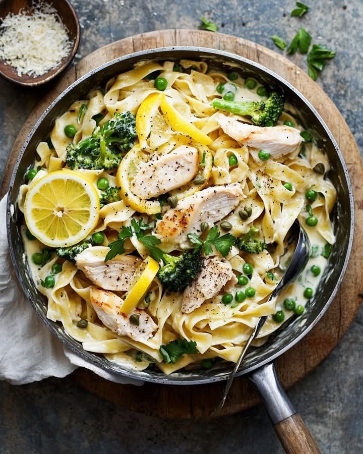 Creamy Lemon Chicken Fettuccine is a luscious, tangy pasta dish that combines tender seared chicken with fettuccine in a rich, zesty lemon cream sauce. Perfectly balanced with garlic, Parmesan, and fresh herbs, it’s a restaurant-quality meal you can make at home in under 45 minutes.