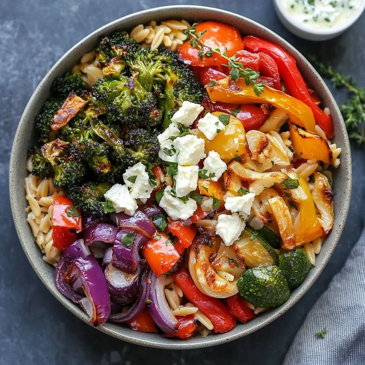 Creamy Lemon Orzo with Roasted Vegetables & Herbs