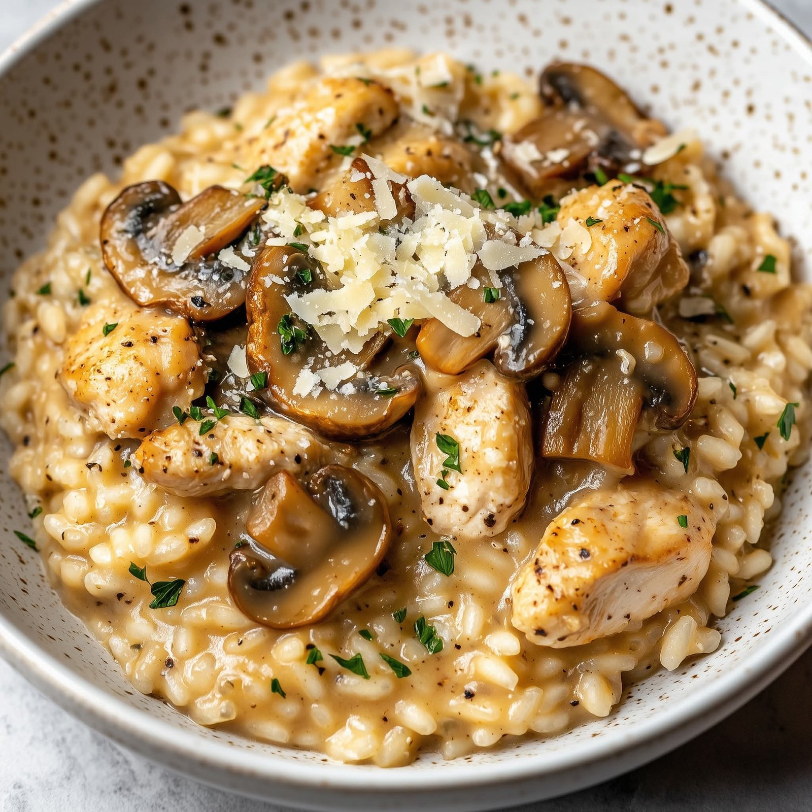 Creamy Mushroom Chicken Parmesan Risotto