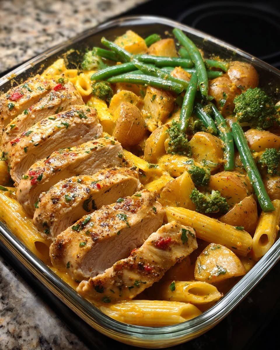 Creamy One-Pan Chicken Pasta with Potatoes, Green Beans & Broccoli