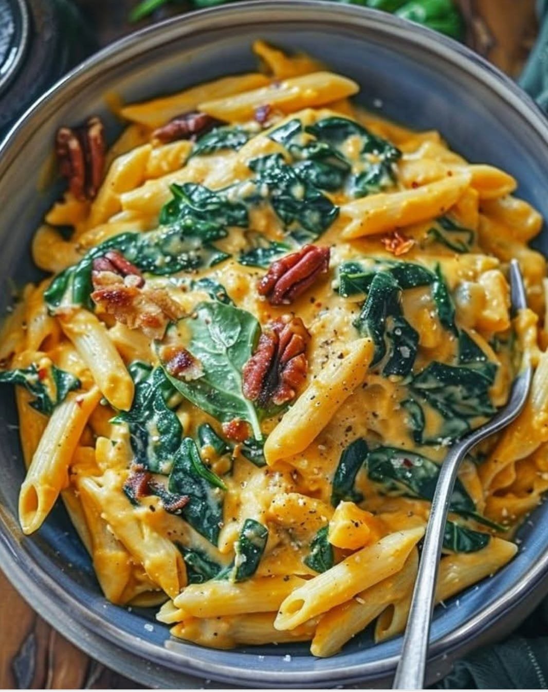 This Creamy Pumpkin and Spinach Penne is a rich and flavorful dish that combines velvety pumpkin sauce with fresh spinach and tender penne pasta. The natural sweetness of pumpkin blends beautifully with garlic, Parmesan, and a touch of nutmeg, creating a warm and comforting meal perfect for fall or any time you crave something creamy yet nutritious.