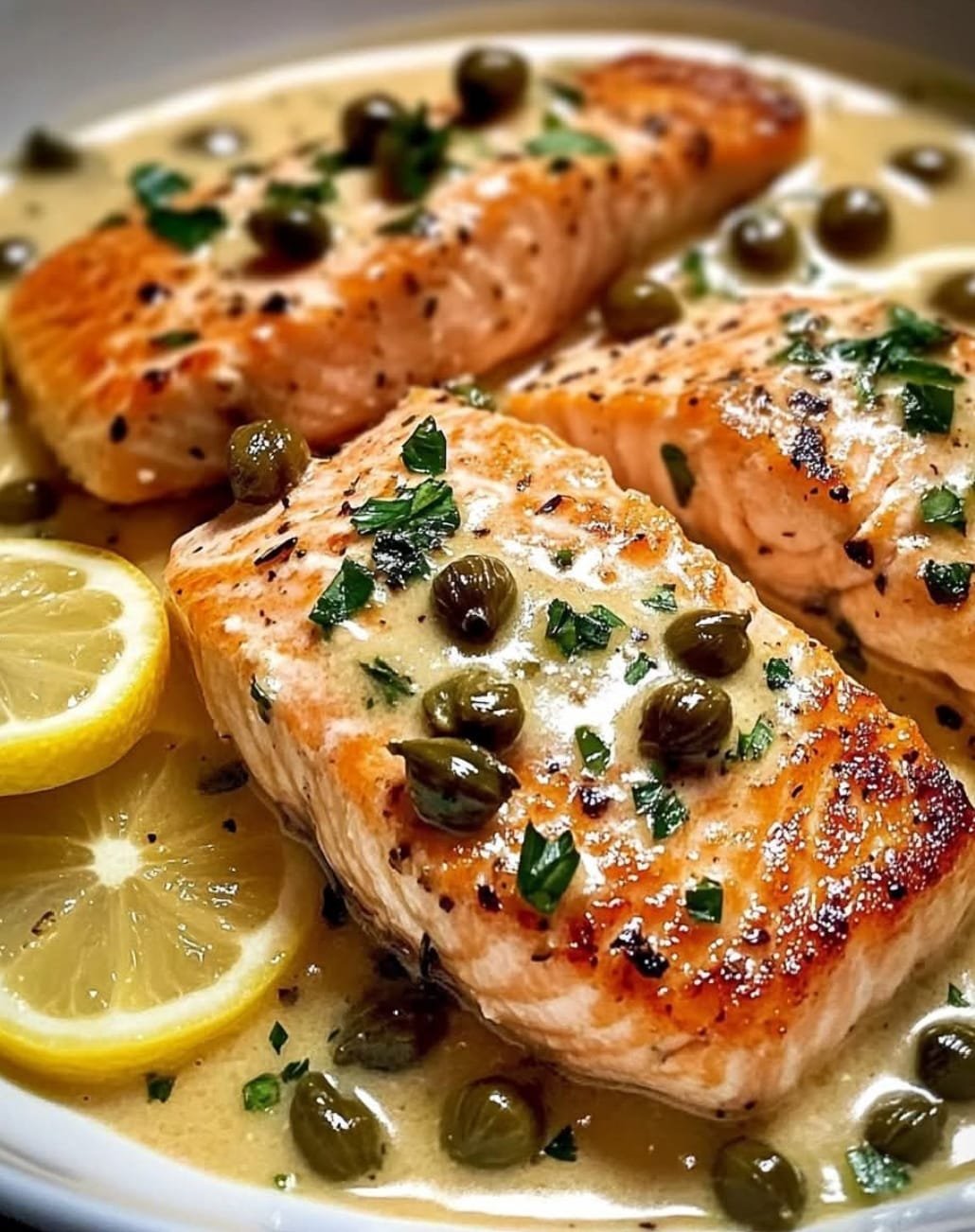 Creamy Salmon Piccata with Lemon & Capers