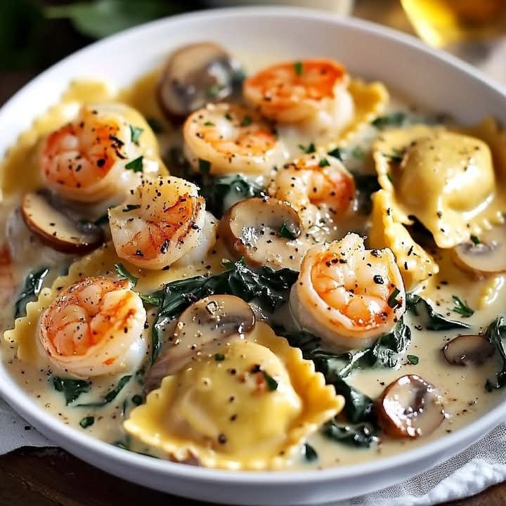 This Creamy Shrimp and Spinach Ravioli is a restaurant-quality dish made at home in under an hour. Tender ravioli is tossed in a rich, garlicky cream sauce with plump shrimp and sautéed spinach. The combination of buttery, cheesy, and slightly garlicky flavors makes this an irresistible dish!