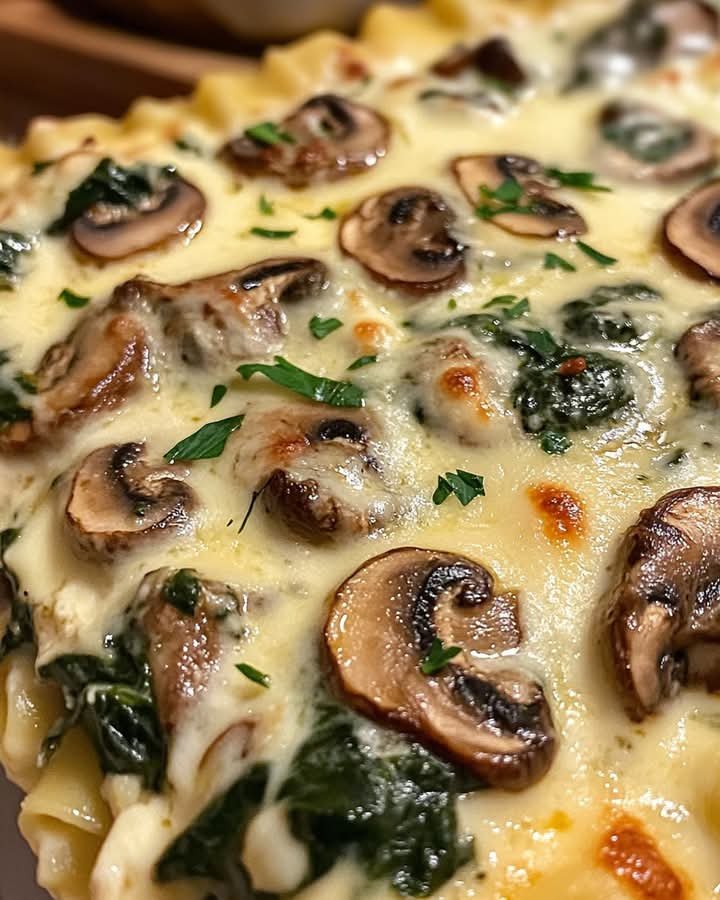 This Creamy Spinach Mushroom Lasagna is a rich and comforting vegetarian dish layered with tender lasagna noodles, a velvety white béchamel sauce, sautéed mushrooms and spinach, and layers of gooey cheese. It’s perfect for family dinners or special occasions.