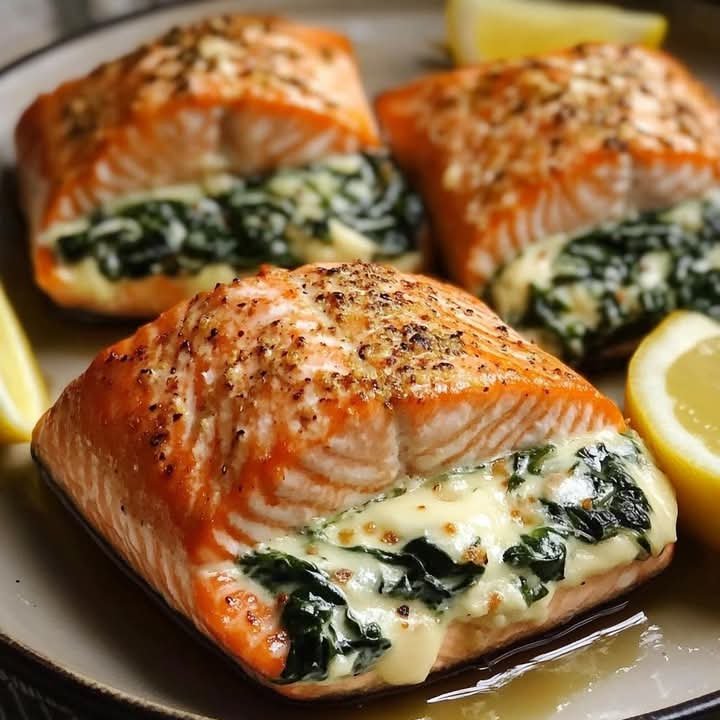 Creamy Spinach Stuffed Salmon is a luxurious, protein-packed dish featuring juicy salmon fillets stuffed with a cheesy spinach filling and baked to perfection. It’s low-carb, keto-friendly, and bursting with flavor—perfect for a weeknight dinner or a special occasion.