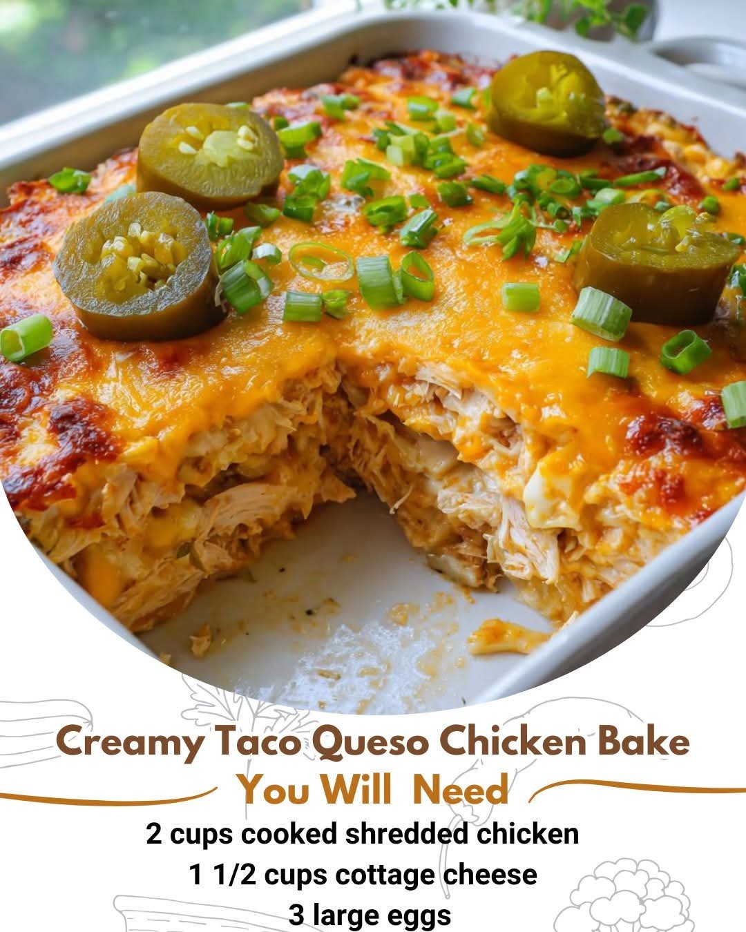 Creamy Taco Bell–Style Queso Chicken Cottage Cheese Bake