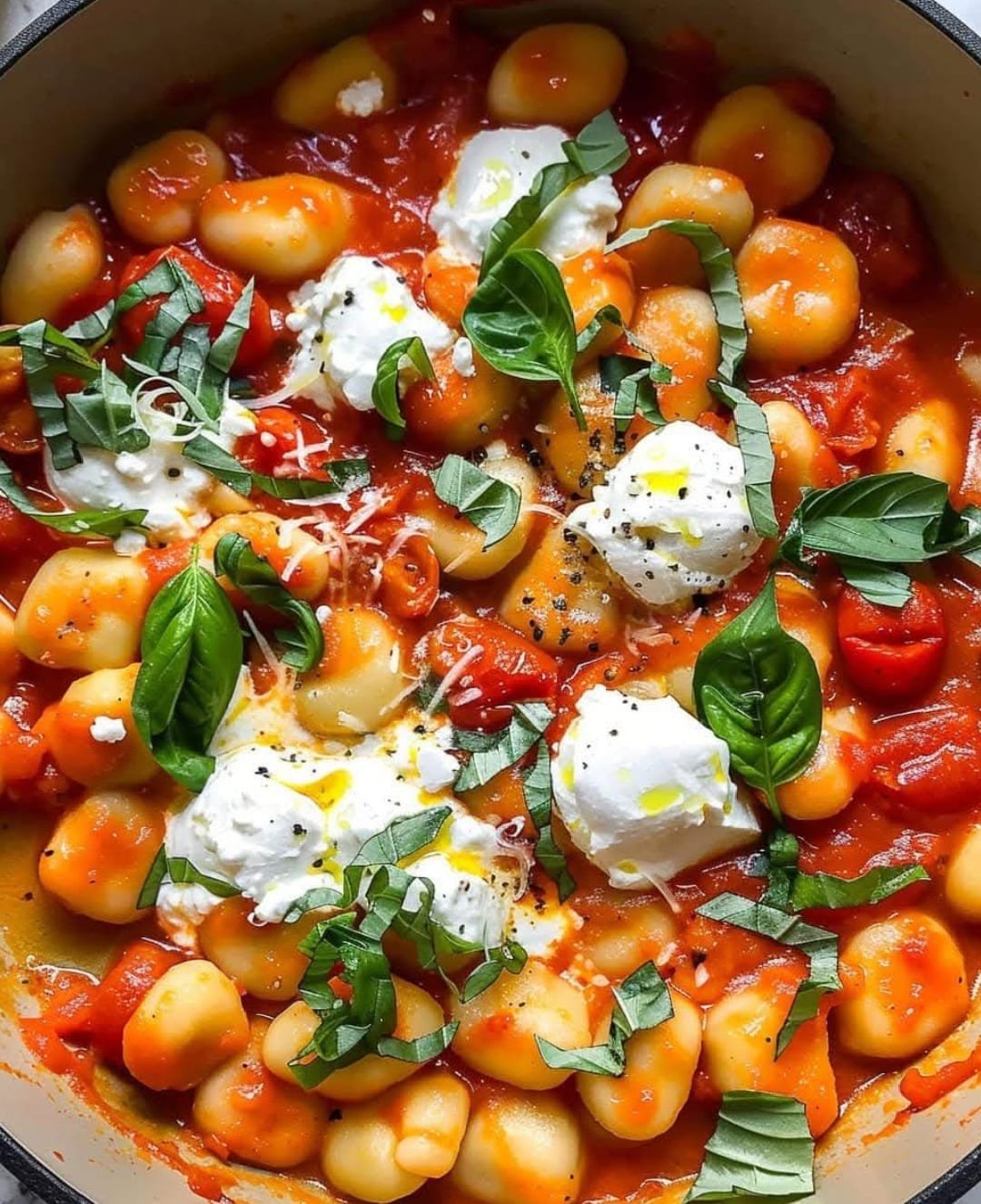This Creamy Tomato and Burrata Gnocchi is a luxurious yet simple dish that combines pillowy soft gnocchi with a rich and velvety tomato sauce, all topped with creamy burrata cheese. The burst of fresh basil and the slight tang from the tomatoes make it a restaurant-quality meal that’s perfect for a cozy dinner. Plus, it comes together in under 30 minutes, making it an ideal weeknight option!