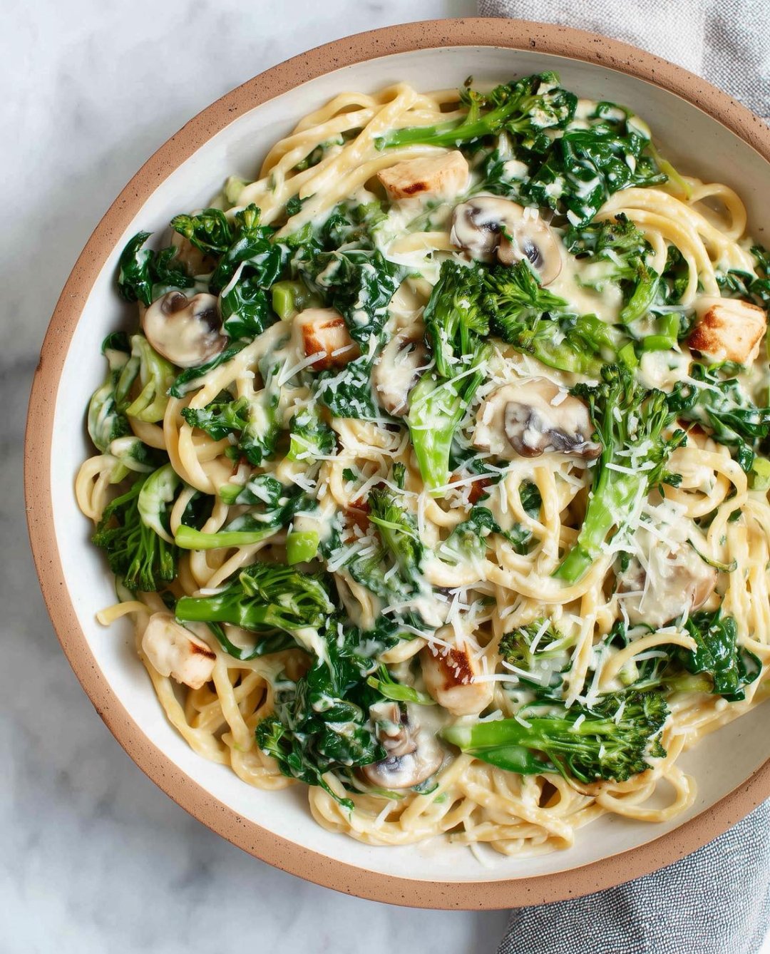 Silky, dairy-free creamy pasta made with a garlic-cashew sauce, tossed with vegetables and herbs. Comfort food that still feels light and fresh.