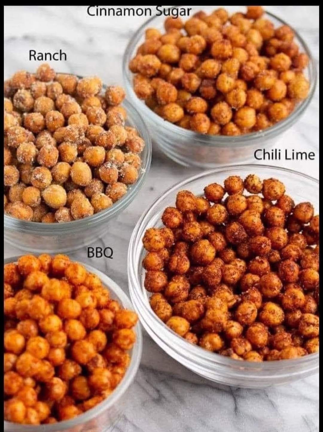 Coat chickpeas with coconut oil, cinnamon, and a touch of brown sugar or maple syrup for a sweet and crunchy treat