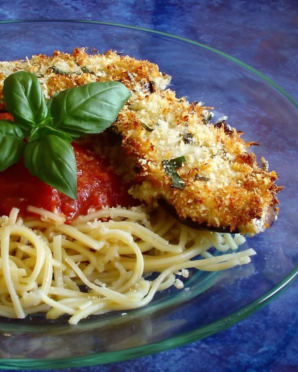 Crispy Basil Parmesan Eggplant Bake Description: