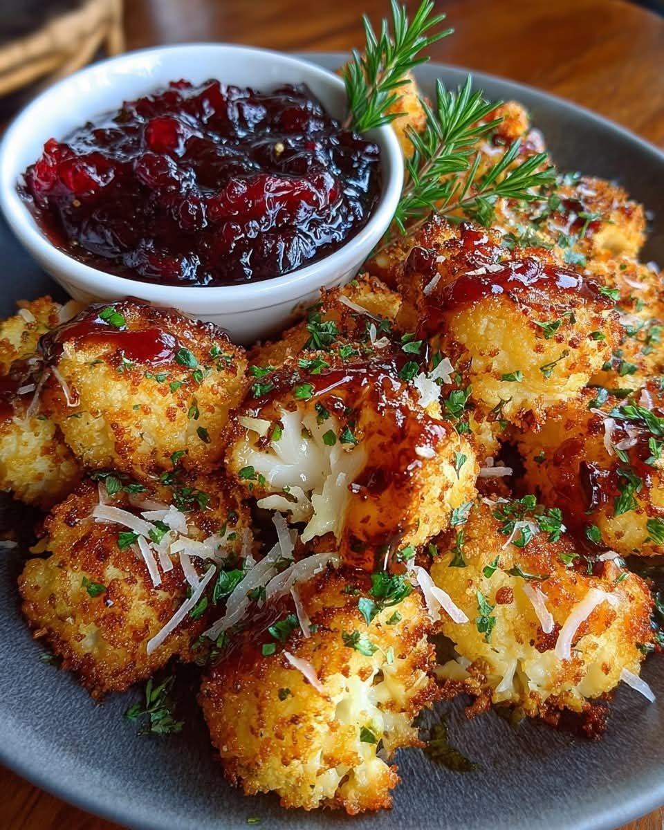Crispy Cauliflower Bites with Brie & Cranberry Sauce