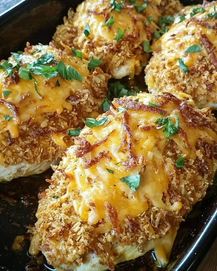 Crispy Cheddar Baked Chicken is a comfort food classic that combines juicy chicken breasts with a cheesy, crunchy coating made from cheddar cheese, breadcrumbs, and simple seasonings. It’s oven-baked for a healthier twist on fried chicken, while still delivering a satisfying crunch and rich flavor.