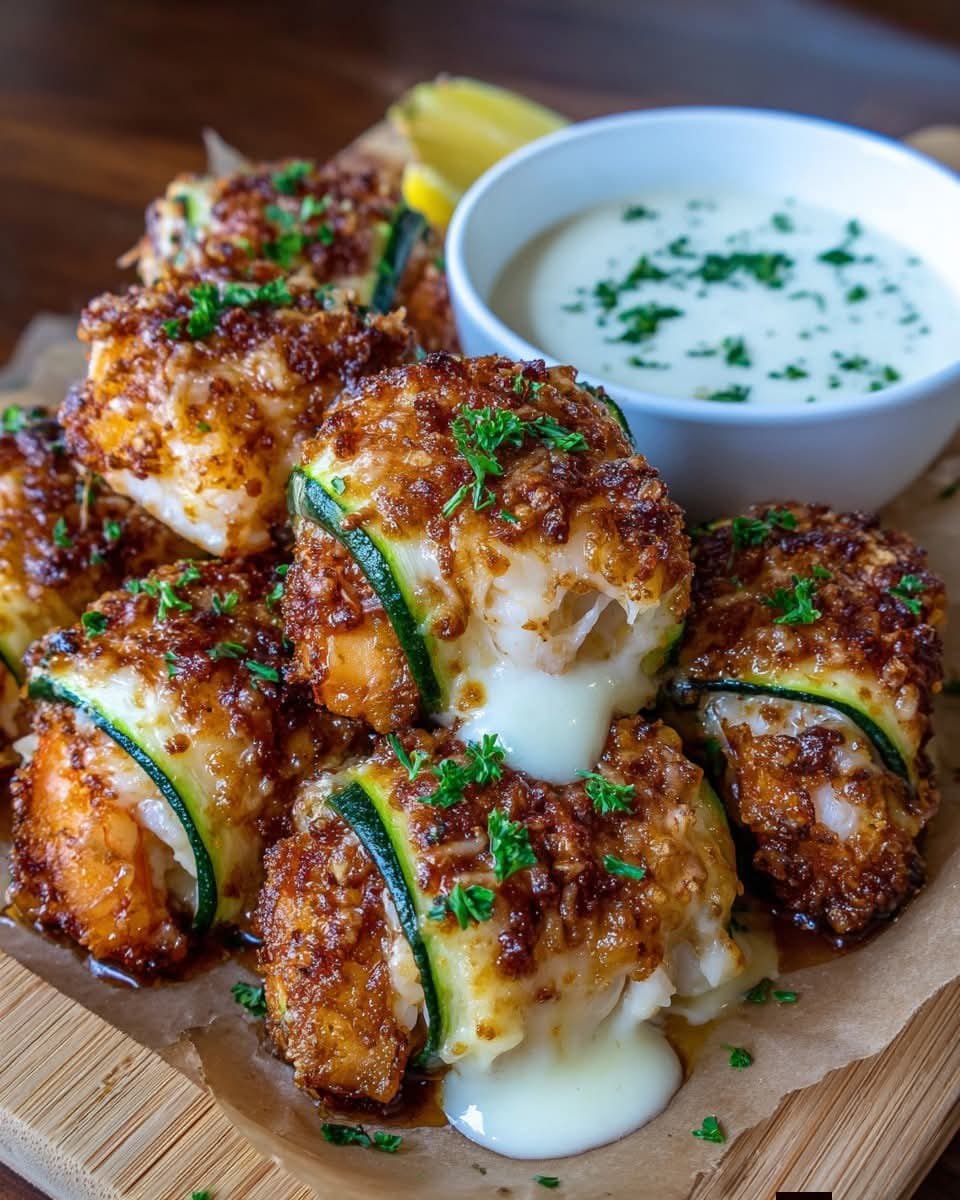 Crispy Cheesy Zucchini Wrapped Shrimp Bites
