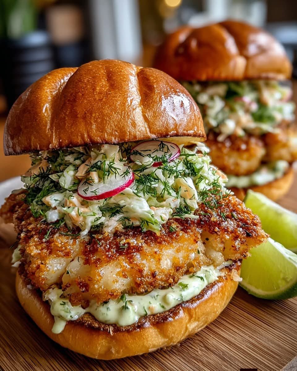 Crispy Cod Sliders with High-Protein Avocado-Lime Crema and Spring Radish Slaw