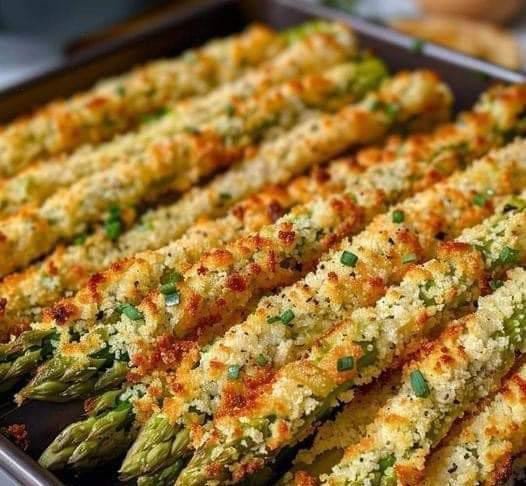 Enjoy the perfect combination of crispy asparagus coated in Parmesan cheese for a delightful snack or side dish!