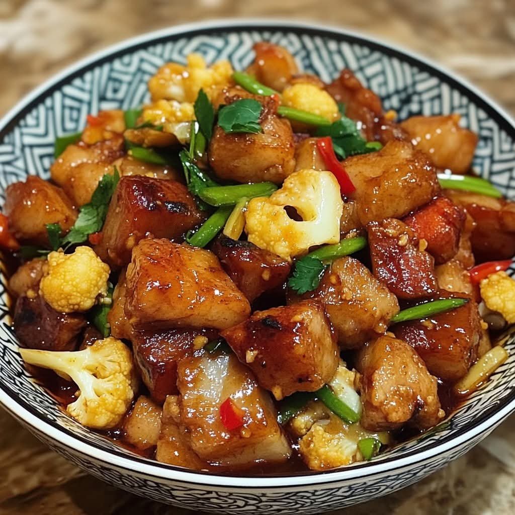Crispy Pork Belly and Garlic Cauliflower Wok Stir-Fry is a rich, savory dish combining golden-crispy pork belly with tender roasted cauliflower tossed in a fragrant garlic soy sauce. The wok cooking technique creates deep caramelized flavors and irresistible texture — crispy, garlicky, and slightly spicy. Perfect for weeknight dinners or restaurant-style homemade meals.