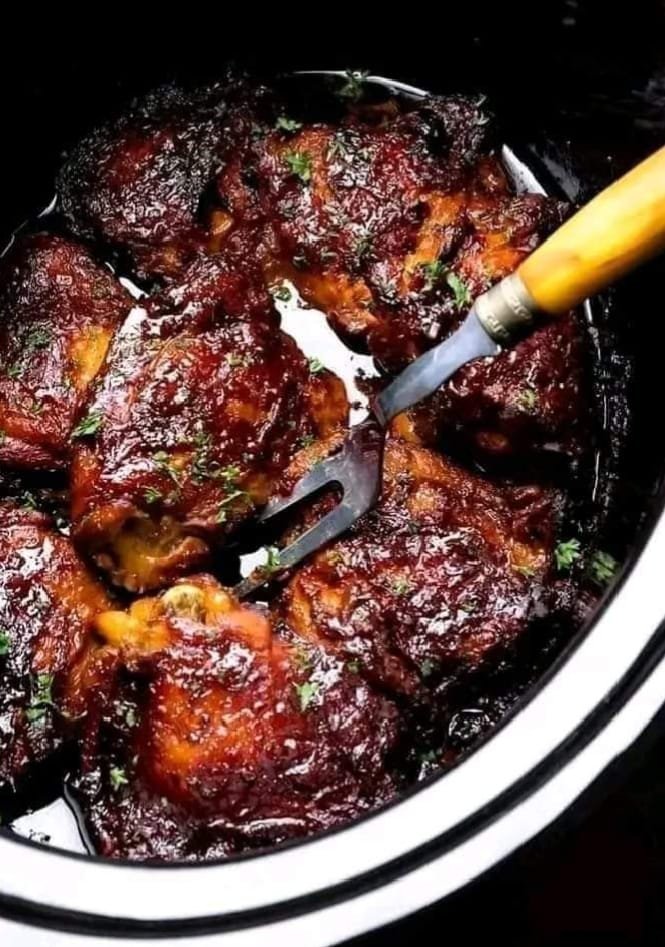 Chicken Thighs cooked in the crock pot make a mouthwatering recipe that’s perfect for a busy weeknight or lazy weekends! Juicy chicken coated in a thick rich sauce flavored with garlic, honey, and soy sauce is a slow cooker hit.