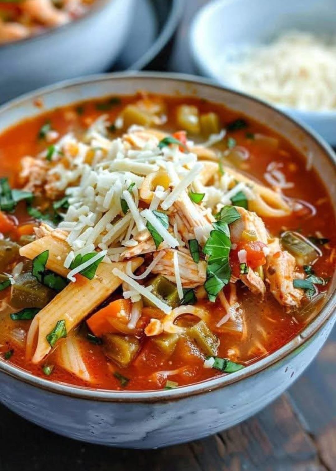 This Crockpot Chicken Parmesan Soup transforms all the flavors of classic Chicken Parmesan into a hearty, comforting soup. It features tender shredded chicken, a rich tomato broth, pasta, and plenty of Parmesan cheese, all slow-cooked to perfection. It’s an easy set-it-and-forget-it meal, perfect for busy nights!