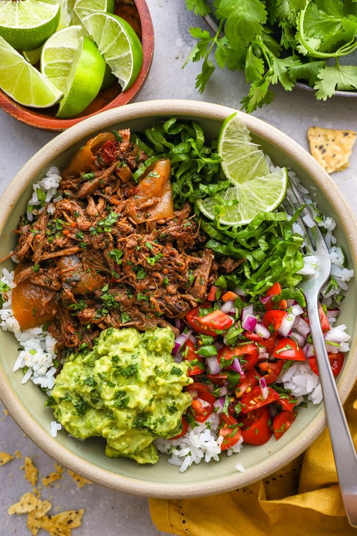 Tender slow-cooked shredded beef infused with smoky paprika, garlic, and herbs, served over brown rice or quinoa with roasted vegetables and a light lemon-herb dressing.