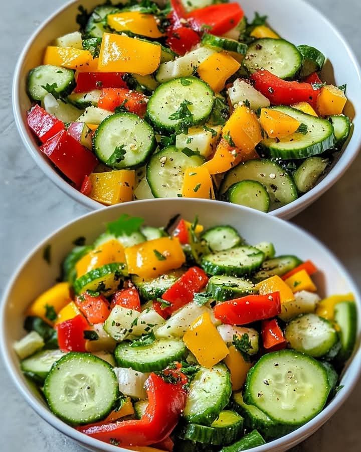 This refreshing Cucumber Bell Pepper Salad is crisp, colorful, and full of fresh flavor. Ideal as a side dish for summer meals, picnics, or light lunches, it’s made with simple ingredients like cucumbers, bell peppers, and a zesty vinaigrette. It’s naturally low in calories and rich in antioxidants, making it both delicious and healthy.