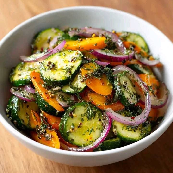 This salad is light, crunchy, and aromatic—perfect as a side dish for summer meals, grilled meats, or a quick weekday lunch. The combination of cool cucumbers, sweet shredded carrots, and fresh dill creates a vibrant flavor profile that’s simple yet satisfying.
