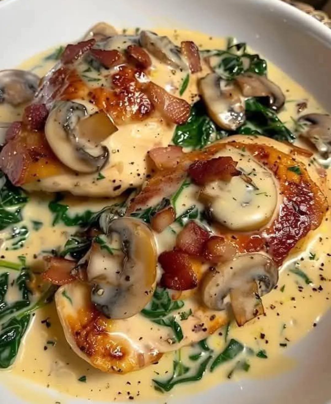 This creamy garlic mushroom and spinach chicken is a flavor-packed, comforting dish that never fails to impress. Perfect for busy nights or elegant dinners—enjoy every decadent bite!