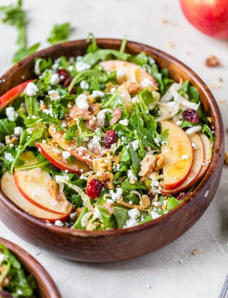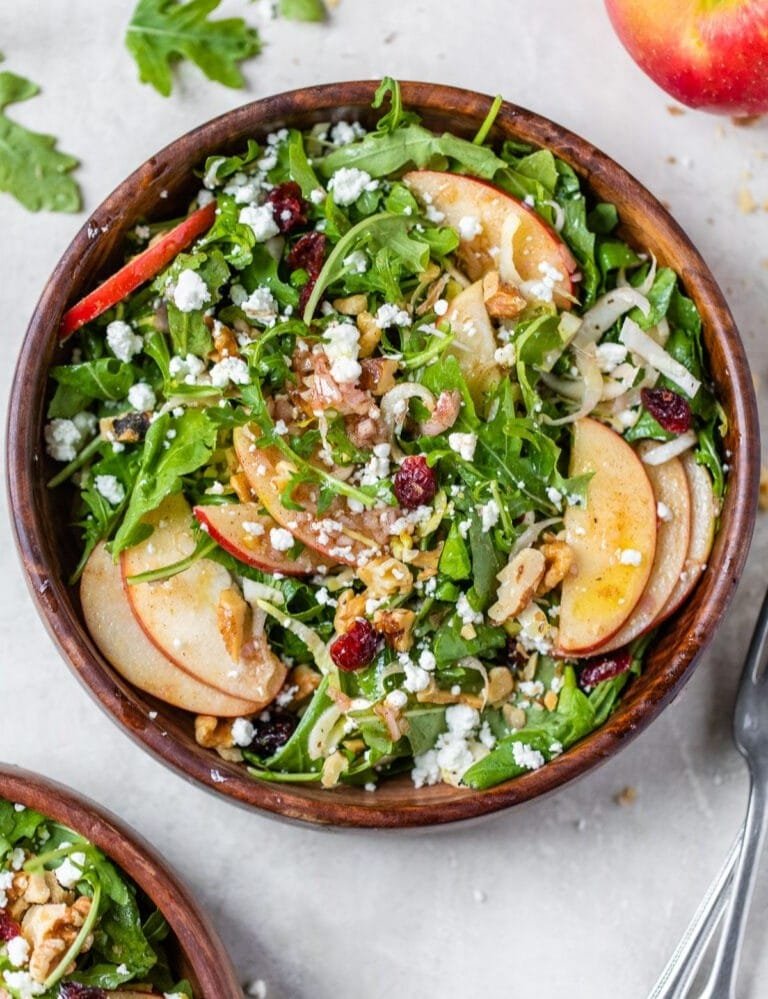 ⭐A bitter green like endive provides a delicious, bright, and welcome counterpoint to the sweet apples and is a classic pairing with arugula, especially if you are serving this as a part of a larger meal. Radicchio would be the closest swap. If you aren’t a fan of endive, you can swap it for spring mix, chopped romaine, or really any mixed lettuce you prefer.
