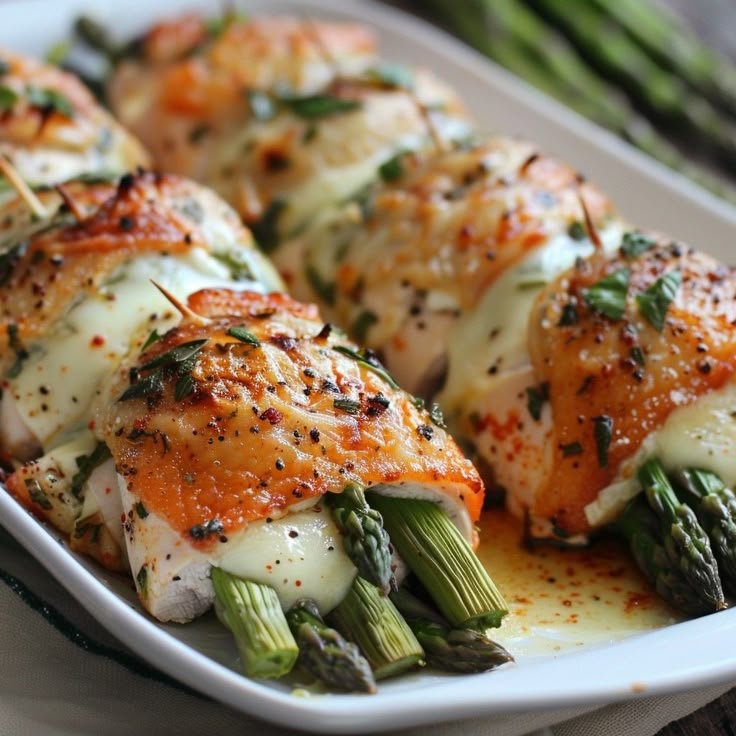 Juicy chicken breasts stuffed with tender asparagus, garlic, lemon zest, and a touch of creamy cheese, then baked until golden.This dish looks festive and indulgent but stays light, protein-rich, and healthy — a true crowd-pleaser.